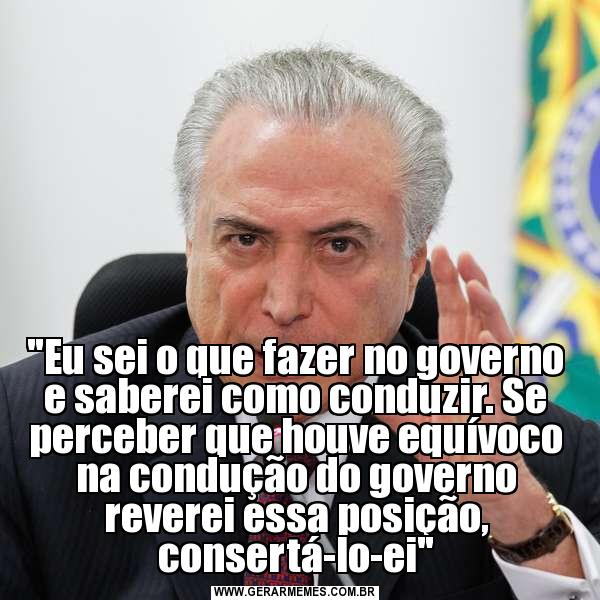 "Eu sei o que fazer no governo e saberei como conduzir. Se perceber que houve equívoco na condução do governo reverei essa posição, consertá-lo-ei"