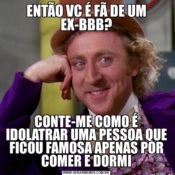 ENTÃO VC É FÃ DE UM EX-BBB? CONTE-ME COMO É IDOLATRAR UMA PESSOA QUE FICOU FAMOSA APENAS POR COMER E DORMI