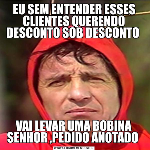 EU SEM ENTENDER ESSES CLIENTES QUERENDO DESCONTO SOB DESCONTO VAI LEVAR UMA BOBINA SENHOR ,PEDIDO ANOTADO