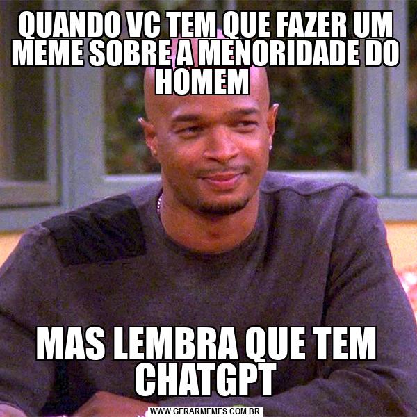 QUANDO VC TEM QUE FAZER UM MEME SOBRE A MENORIDADE DO HOMEM MAS LEMBRA QUE TEM CHATGPT