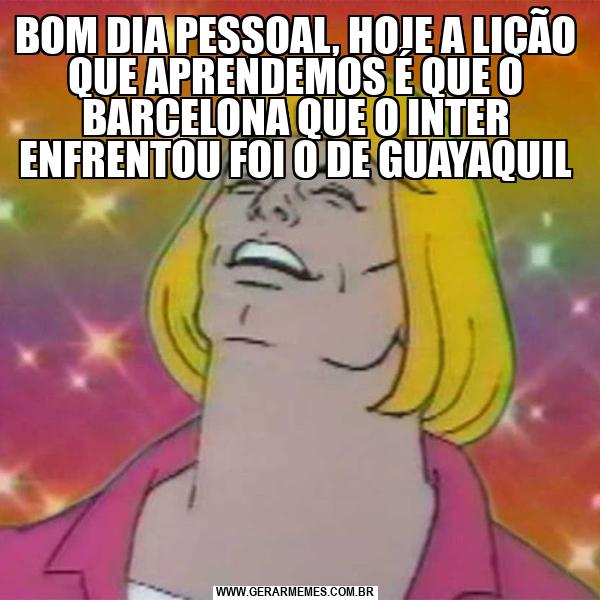 BOM DIA PESSOAL, HOJE A LIÇÃO QUE APRENDEMOS É QUE O BARCELONA QUE O INTER ENFRENTOU FOI O DE GUAYAQUIL