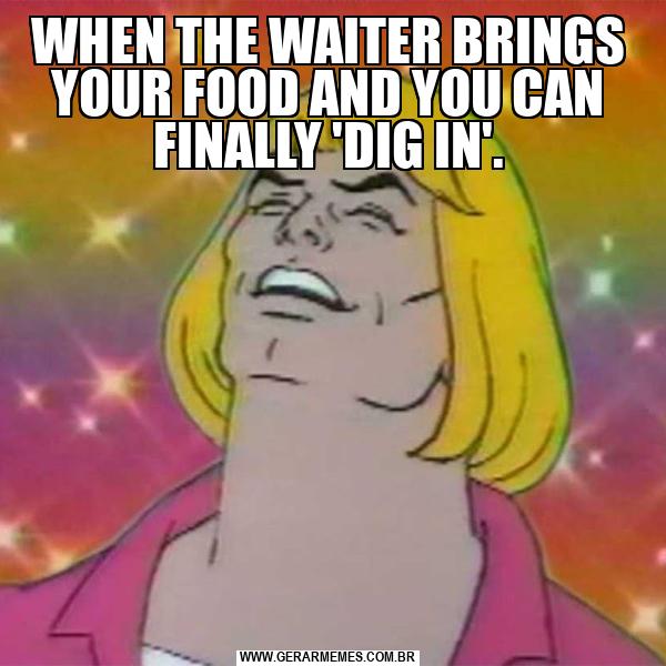 WHEN THE WAITER BRINGS YOUR FOOD AND YOU CAN FINALLY 'DIG IN'.
