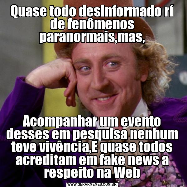 Quase todo desinformado rí de fenômenos paranormais,mas, Acompanhar um evento desses em pesquisa nenhum teve vivência,E quase todos acreditam em fake news a respeito na Web