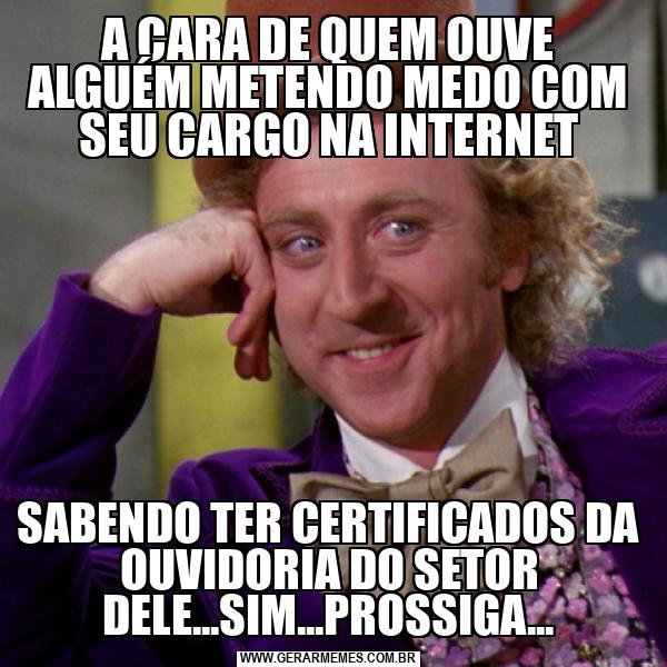 A CARA DE QUEM OUVE ALGUÉM METENDO MEDO COM SEU CARGO NA INTERNET SABENDO TER CERTIFICADOS DA OUVIDORIA DO SETOR DELE...SIM...PROSSIGA...