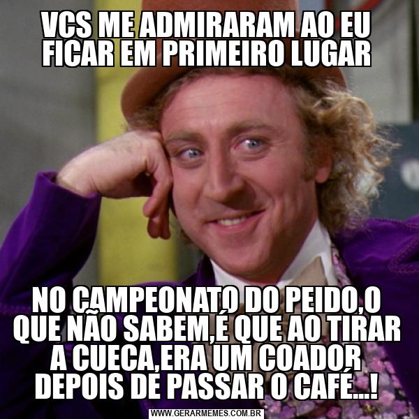 VCS ME ADMIRARAM AO EU FICAR EM PRIMEIRO LUGAR NO CAMPEONATO DO PEIDO,O QUE NÃO SABEM,É QUE AO TIRAR A CUECA,ERA UM COADOR DEPOIS DE PASSAR O CAFÉ...!