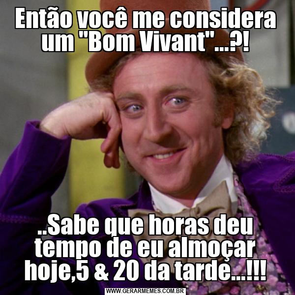 Então você me considera um "Bom Vivant"...?! ..Sabe que horas deu tempo de eu almoçar hoje,5 & 20 da tarde...!!!