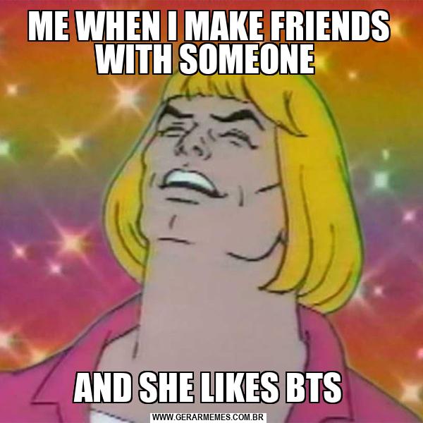 ME WHEN I MAKE FRIENDS WITH SOMEONE AND SHE LIKES BTS