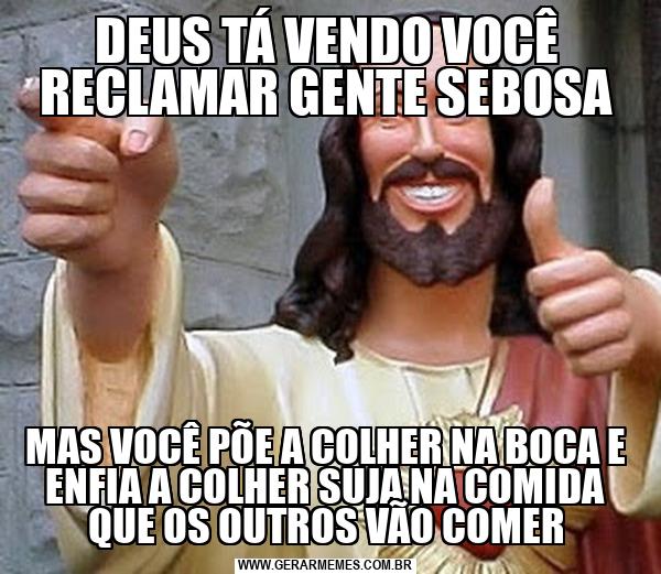 DEUS TÁ VENDO VOCÊ RECLAMAR GENTE SEBOSA MAS VOCÊ PÕE A COLHER NA BOCA E ENFIA A COLHER SUJA NA COMIDA QUE OS OUTROS VÃO COMER