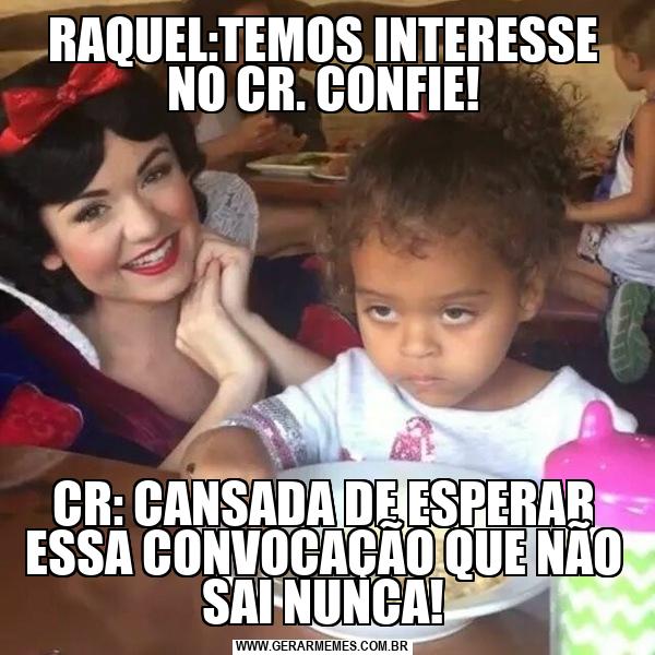RAQUEL:TEMOS INTERESSE NO CR. CONFIE! CR: CANSADA DE ESPERAR ESSA CONVOCAÇÃO QUE NÃO SAI NUNCA!