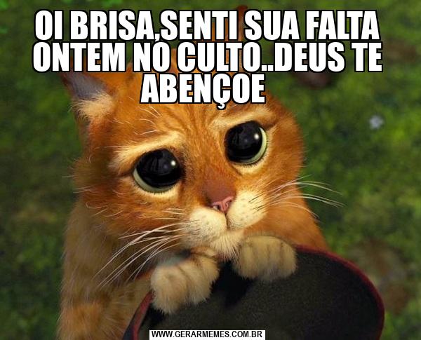 OI BRISA,SENTI SUA FALTA ONTEM NO CULTO..DEUS TE ABENÇOE