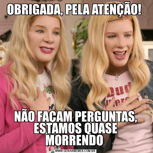 OBRIGADA, PELA ATENÇÃO! NÃO FAÇAM PERGUNTAS, ESTAMOS QUASE MORRENDO