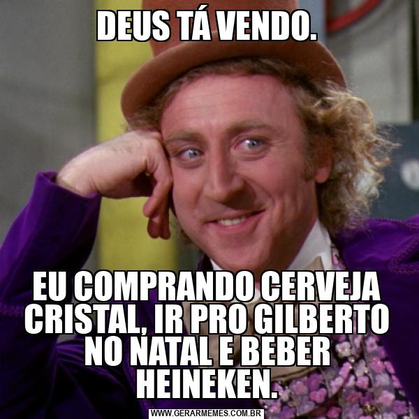 DEUS TÁ VENDO. EU COMPRANDO CERVEJA CRISTAL, IR PRO GILBERTO NO NATAL E BEBER HEINEKEN.