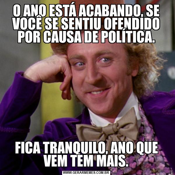 O ANO ESTÁ ACABANDO, SE VOCÊ SE SENTIU OFENDIDO POR CAUSA DE POLÍTICA. FICA TRANQUILO, ANO QUE VEM TEM MAIS.