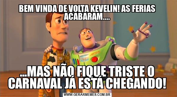 BEM VINDA DE VOLTA KEVELIN! AS FERIAS ACABARAM.... ...MAS NÃO FIQUE TRISTE O CARNAVAL JÁ ESTÁ CHEGANDO!