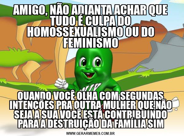AMIGO, NÃO ADIANTA ACHAR QUE TUDO É CULPA DO HOMOSSEXUALISMO OU DO FEMINISMO QUANDO VOCÊ OLHA COM SEGUNDAS INTENÇÕES PRA OUTRA MULHER QUE NÃO SEJA A SUA VOCÊ ESTÁ CONTRIBUINDO PARA A DESTRUIÇÃO DA FAMÍLIA SIM