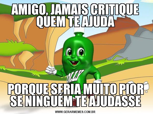 AMIGO, JAMAIS CRITIQUE QUEM TE AJUDA PORQUE SERIA MUITO PIOR SE NINGUÉM TE AJUDASSE