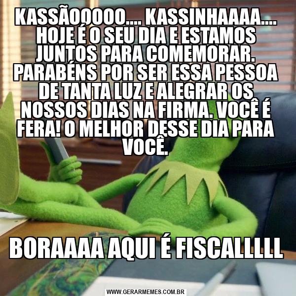 KASSÃOOOOO.... KASSINHAAAA.... HOJE É O SEU DIA E ESTAMOS JUNTOS PARA COMEMORAR. PARABÉNS POR SER ESSA PESSOA DE TANTA LUZ E ALEGRAR OS NOSSOS DIAS NA FIRMA. VOCÊ É FERA! O MELHOR DESSE DIA PARA VOCÊ. BORAAAA AQUI É FISCALLLLL