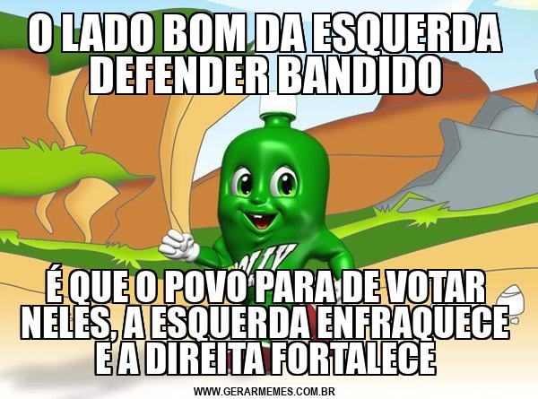 O LADO BOM DA ESQUERDA DEFENDER BANDIDO É QUE O POVO PARA DE VOTAR NELES, A ESQUERDA ENFRAQUECE E A DIREITA FORTALECE