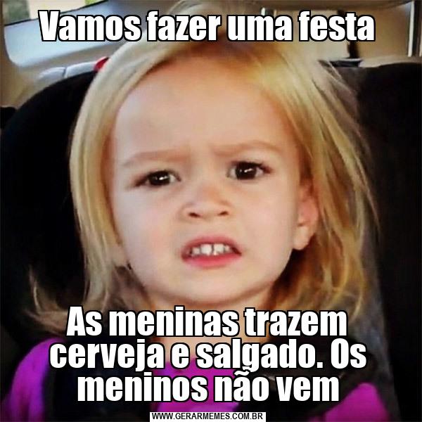 Vamos fazer uma festa As meninas trazem cerveja e salgado. Os meninos não vem