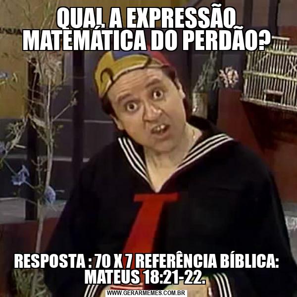 QUAL A EXPRESSÃO MATEMÁTICA DO PERDÃO? RESPOSTA : 70 X 7 REFERÊNCIA BÍBLICA: MATEUS 18:21-22.
