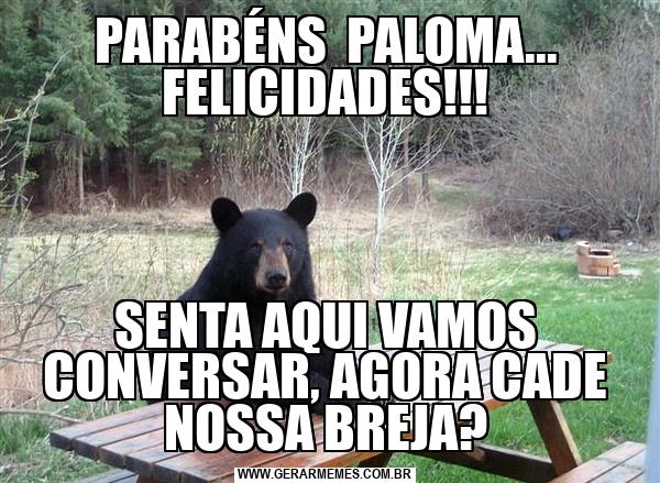 PARABÉNS PALOMA... FELICIDADES!!! SENTA AQUI VAMOS CONVERSAR, AGORA CADE NOSSA BREJA?
