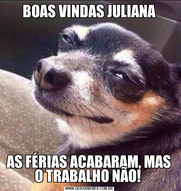 BOAS VINDAS JULIANA AS FÉRIAS ACABARAM, MAS O TRABALHO NÃO!