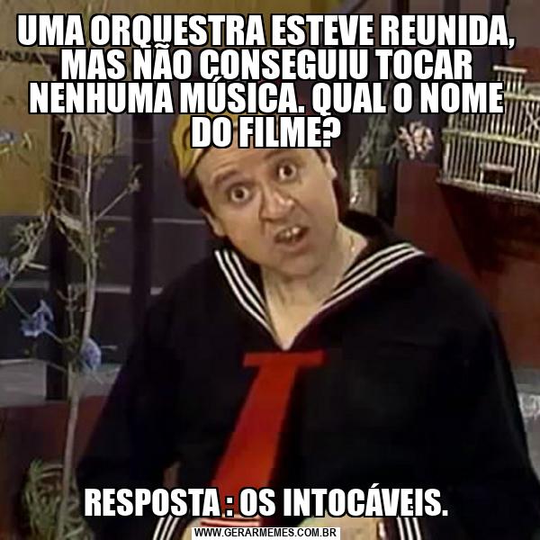 UMA ORQUESTRA ESTEVE REUNIDA, MAS NÃO CONSEGUIU TOCAR NENHUMA MÚSICA. QUAL O NOME DO FILME? RESPOSTA : OS INTOCÁVEIS.