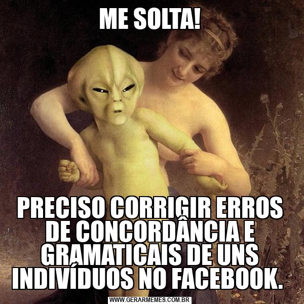 ME SOLTA! PRECISO CORRIGIR ERROS DE CONCORDÂNCIA E GRAMATICAIS DE UNS INDIVÍDUOS NO FACEBOOK.