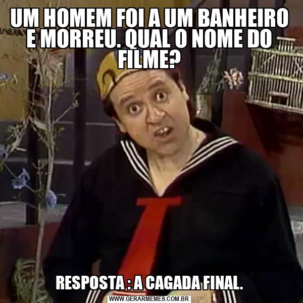 UM HOMEM FOI A UM BANHEIRO E MORREU. QUAL O NOME DO FILME? RESPOSTA : A CAGADA FINAL.