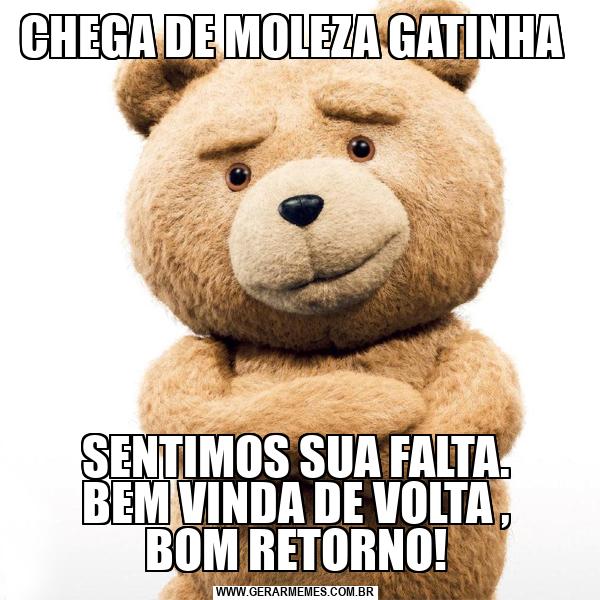 CHEGA DE MOLEZA GATINHA SENTIMOS SUA FALTA. BEM VINDA DE VOLTA , BOM RETORNO!