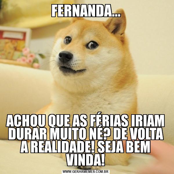 FERNANDA... ACHOU QUE AS FÉRIAS IRIAM DURAR MUITO NÉ? DE VOLTA A REALIDADE! SEJA BEM VINDA!