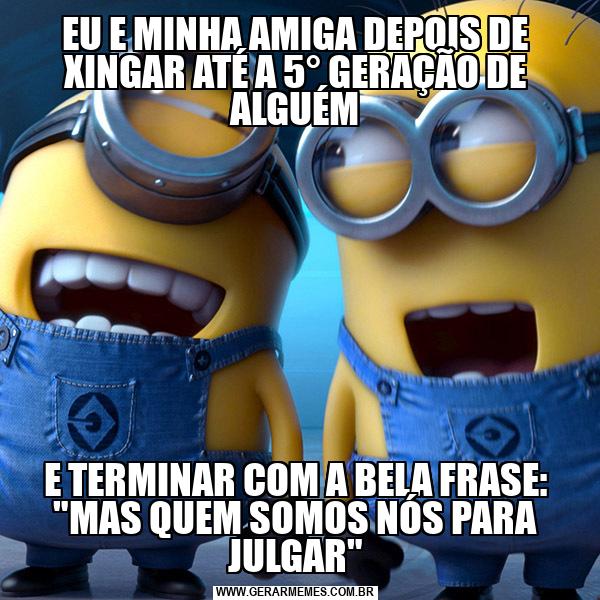 EU E MINHA AMIGA DEPOIS DE XINGAR ATÉ A 5° GERAÇÃO DE ALGUÉM E TERMINAR COM A BELA FRASE: "MAS QUEM SOMOS NÓS PARA JULGAR"