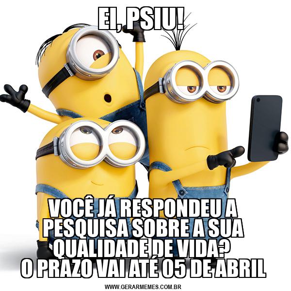 EI, PSIU! VOCÊ JÁ RESPONDEU A PESQUISA SOBRE A SUA QUALIDADE DE VIDA? O PRAZO VAI ATÉ 05 DE ABRIL