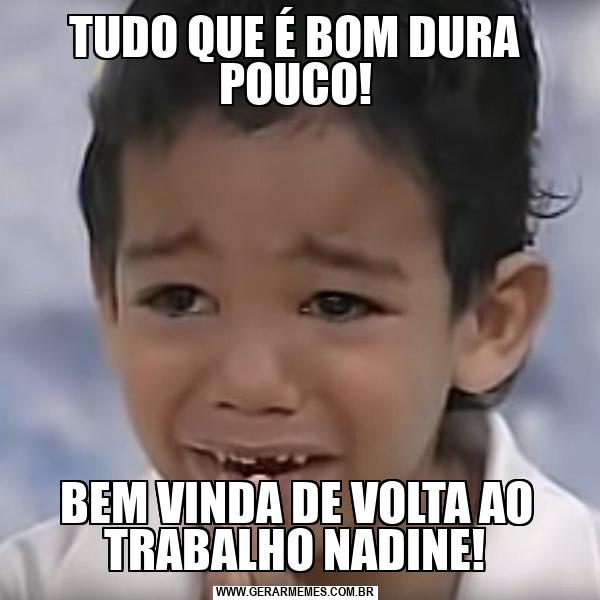 TUDO QUE É BOM DURA POUCO! BEM VINDA DE VOLTA AO TRABALHO NADINE!