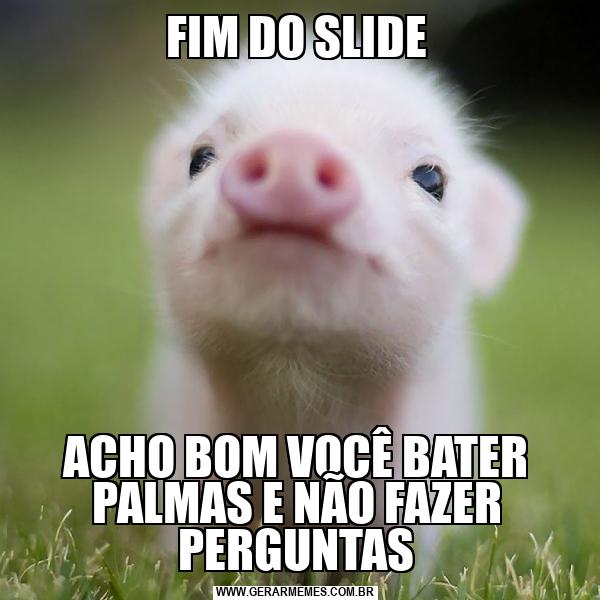 FIM DO SLIDE ACHO BOM VOCÊ BATER PALMAS E NÃO FAZER PERGUNTAS