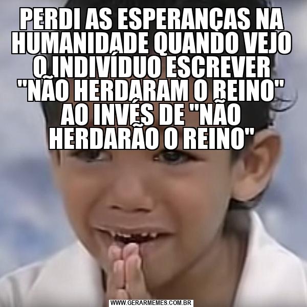 PERDI AS ESPERANÇAS NA HUMANIDADE QUANDO VEJO O INDIVÍDUO ESCREVER "NÃO HERDARAM O REINO" AO INVÉS DE "NÃO HERDARÃO O REINO"