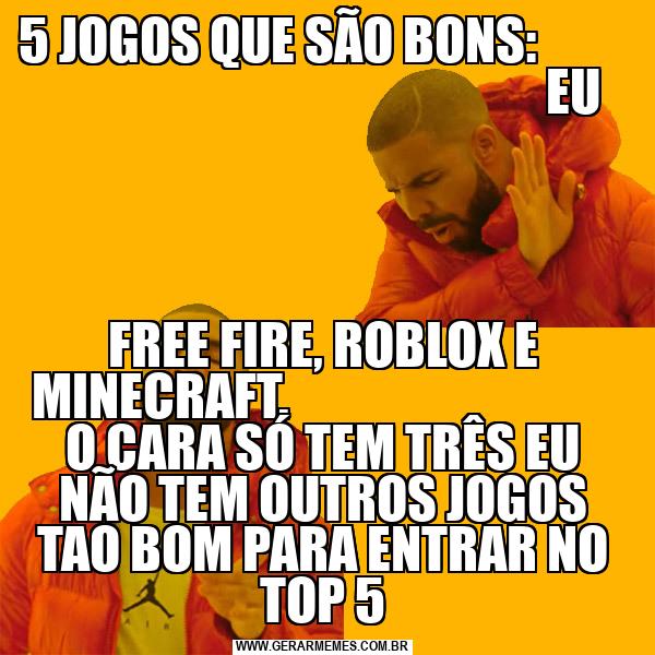 5 JOGOS QUE SÃO BONS: EU FREE FIRE, ROBLOX E MINECRAFT. O CARA SÓ TEM TRÊS EU NÃO TEM OUTROS JOGOS TAO BOM PARA ENTRAR NO TOP 5