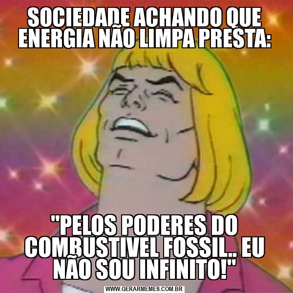 SOCIEDADE ACHANDO QUE ENERGIA NÃO LIMPA PRESTA: "PELOS PODERES DO COMBUSTIVEL FOSSIL.. EU NÃO SOU INFINITO!"