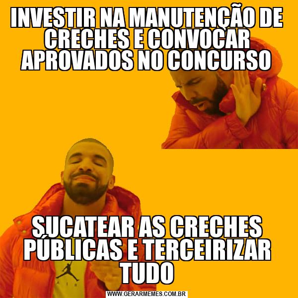 INVESTIR NA MANUTENÇÃO DE CRECHES E CONVOCAR APROVADOS NO CONCURSO SUCATEAR AS CRECHES PÚBLICAS E TERCEIRIZAR TUDO