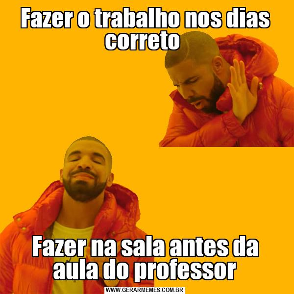 Fazer o trabalho nos dias correto Fazer na sala antes da aula do professor