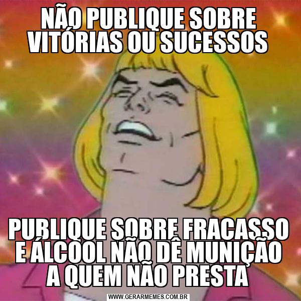 NÃO PUBLIQUE SOBRE VITÓRIAS OU SUCESSOS PUBLIQUE SOBRE FRACASSO E ÁLCOOL NÃO DÊ MUNIÇÃO A QUEM NÃO PRESTA