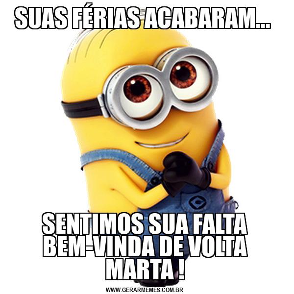 SUAS FÉRIAS ACABARAM... SENTIMOS SUA FALTA BEM-VINDA DE VOLTA MARTA !