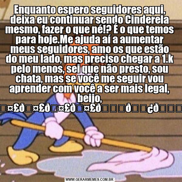 Enquanto espero seguidores aqui, deixa eu continuar sendo Cinderela mesmo, fazer o que né!? É o que temos para hoje.Me ajuda aí a aumentar meus seguidores, amo os que estão do meu lado, mas preciso chegar a 1.k pelo menos, sei que não presto, sou cha