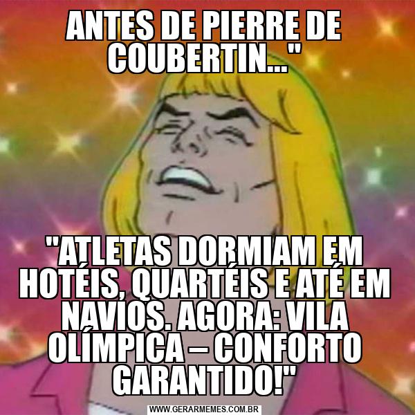 ANTES DE PIERRE DE COUBERTIN..." "ATLETAS DORMIAM EM HOTÉIS, QUARTÉIS E ATÉ EM NAVIOS. AGORA: VILA OLÍMPICA – CONFORTO GARANTIDO!"
