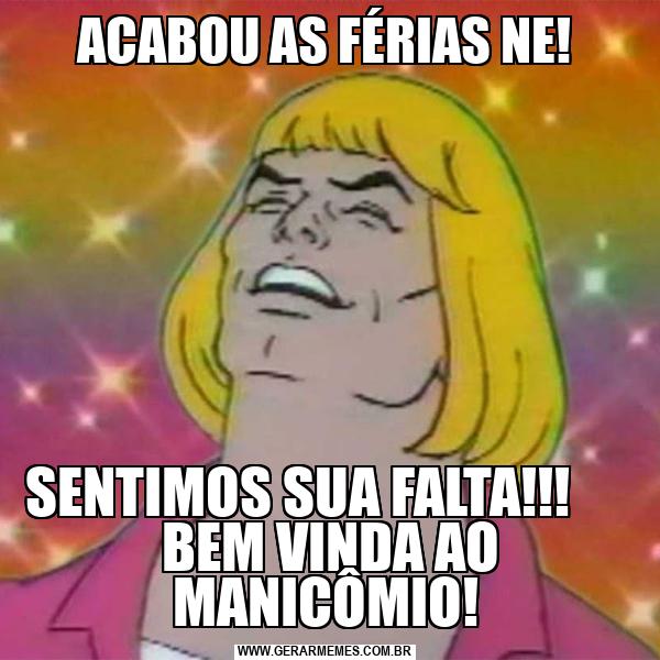 ACABOU AS FÉRIAS NE! SENTIMOS SUA FALTA!!! BEM VINDA AO MANICÔMIO!