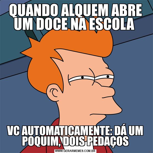 QUANDO ALQUEM ABRE UM DOCE NA ESCOLA VC AUTOMATICAMENTE: DÁ UM POQUIM, DOIS PEDAÇOS