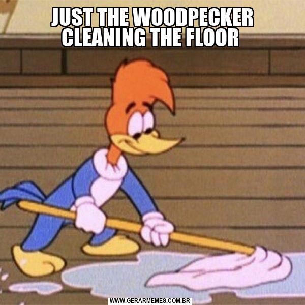 JUST THE WOODPECKER CLEANING THE FLOOR