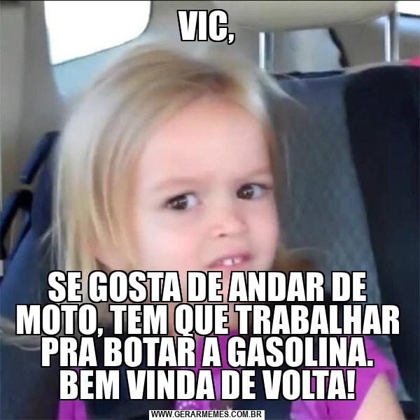 VIC, SE GOSTA DE ANDAR DE MOTO, TEM QUE TRABALHAR PRA BOTAR A GASOLINA. BEM VINDA DE VOLTA!