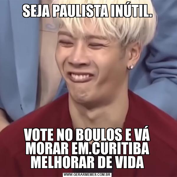 SEJA PAULISTA INÚTIL. VOTE NO BOULOS E VÁ MORAR EM.CURITIBA MELHORAR DE VIDA