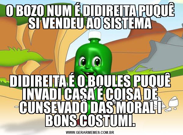 O BOZO NUM É DIDIREITA PUQUÊ SI VENDEU AO SISTEMA DIDIREITA É O BOULES PUQUÊ INVADI CASA É COISA DE CUNSEVADÔ DAS MORAL I BONS COSTUMI.